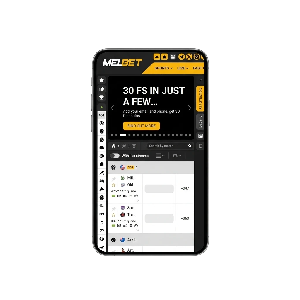 Tap the Melbet icon on your home screen. Log in if you have an account or complete a quick registration to start betting.