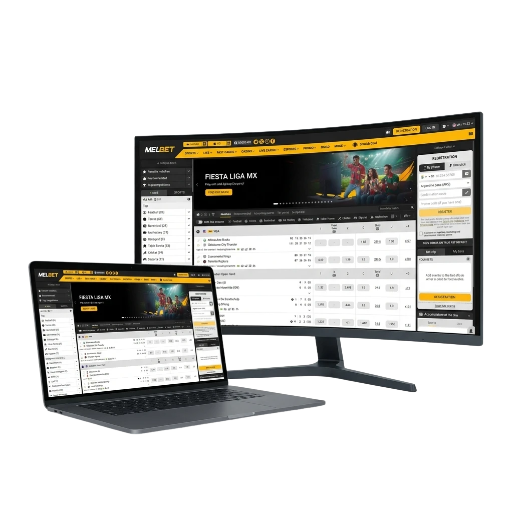 Melbet official website showing betting options, casino games, and live dealer tables accessible on any browser